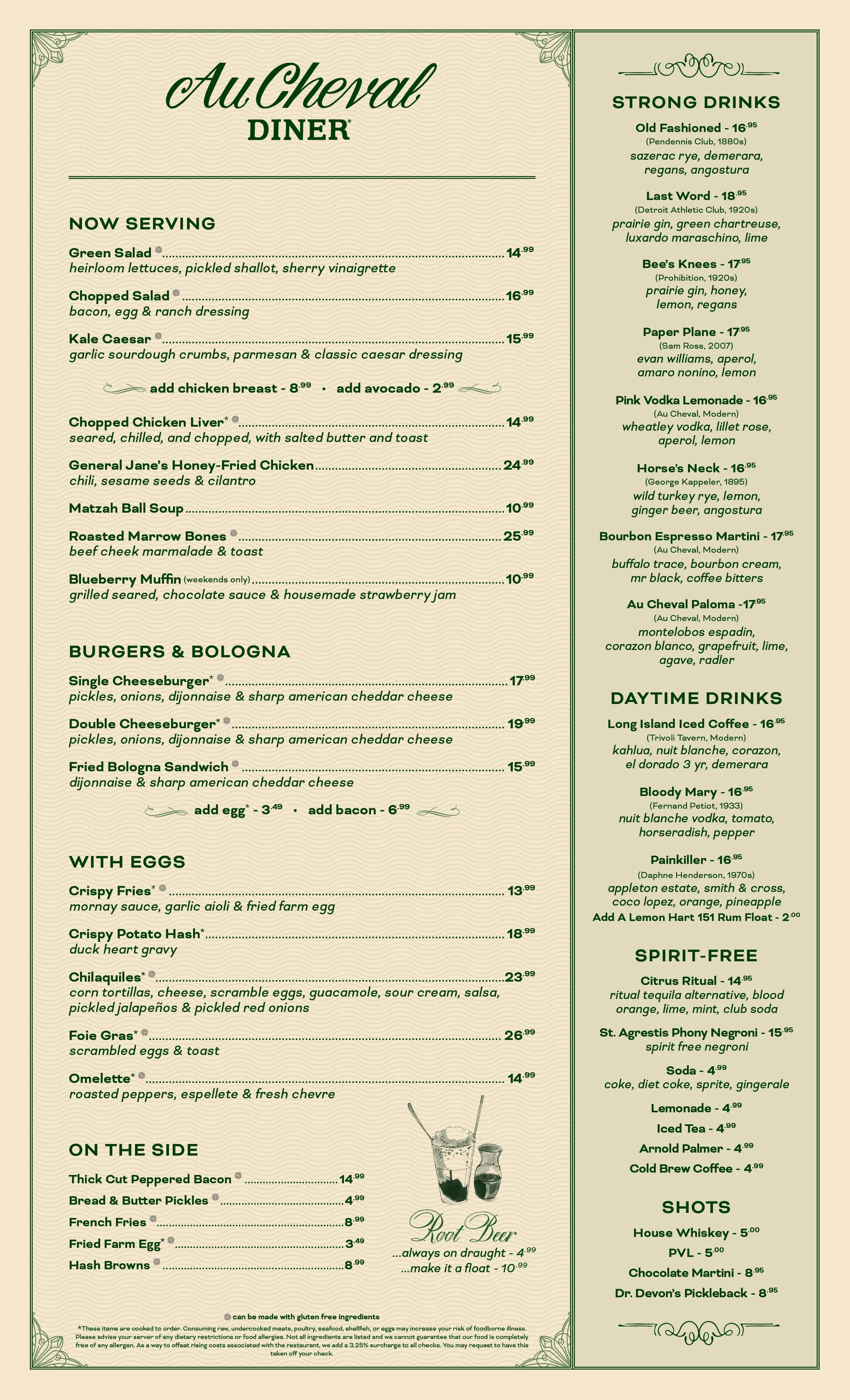 *These items are cooked to order. Consuming raw, undercooked meats, poultry, seafood, shellfish, or eggs may increase your risk of foodborne illness.
